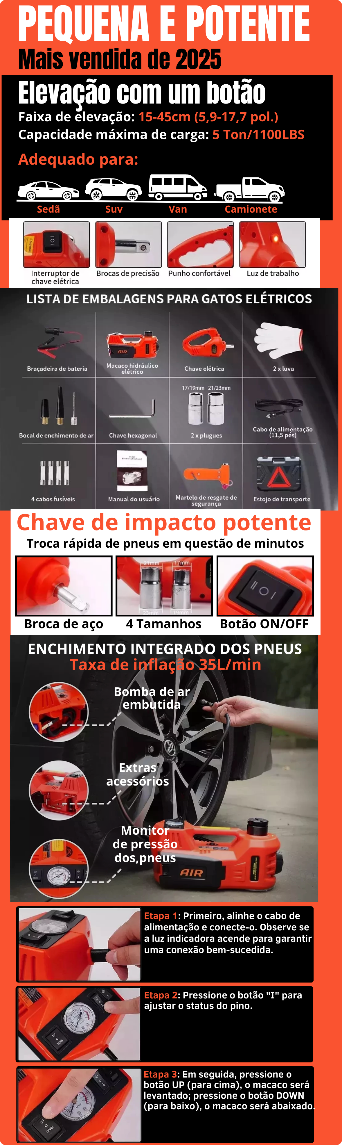 Kit De Macaco Elétrico Para Carro 5t12v Com Chave De Impacto